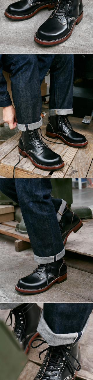 Our boots use Goodyear welt construction, known for its strength, water resistance, and easy resoling. This method lets you replace the sole without damaging the upper, making the boots truly long-lasting. Made to be worn hard, repaired easily, and kept for years — all at a price that stays fair.