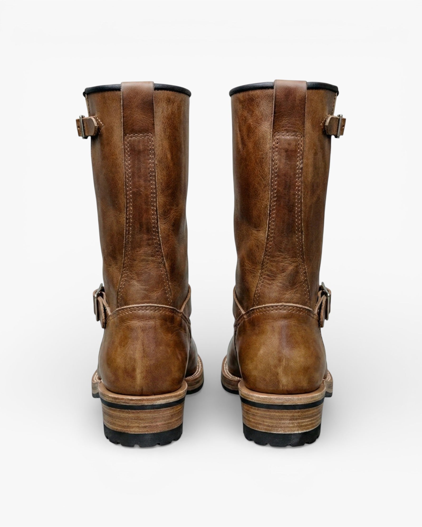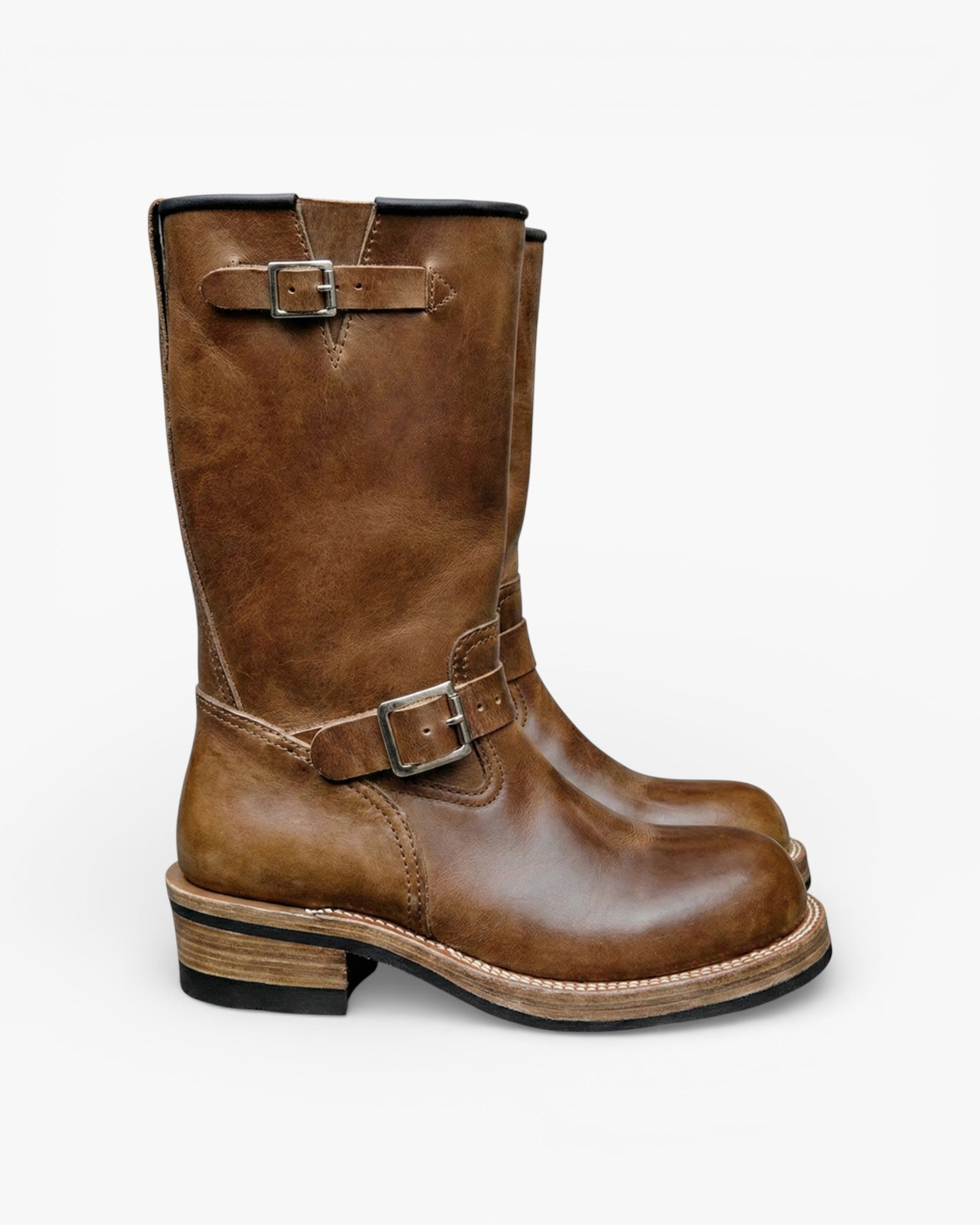 Drawing from the rugged spirit of 1930s workwear and the attitude of 1950s motorcycle gear, Brake House engineer boots 2660 are made from tea-core cowhide that develops a rich, character-filled patina over time. Constructed with Goodyear welt and a VIBRAM® rubber sole, they deliver long-lasting durability, reliable grip, and are fully resolable for a lifetime of wear.