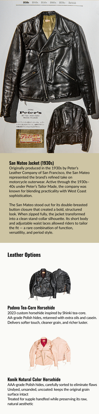Our jacket uses the same raw hides and tanning method as Shinki — but offer it at a better price, without cutting corners.