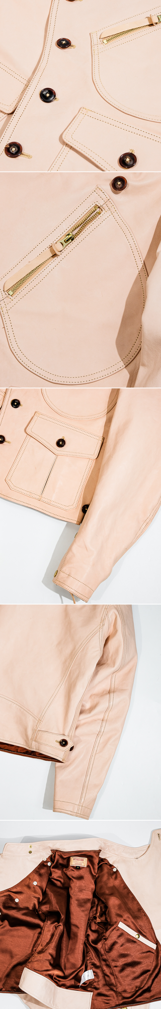 Our jacket uses the same raw hides and tanning method as Shinki — but offer it at a better price, without cutting corners.