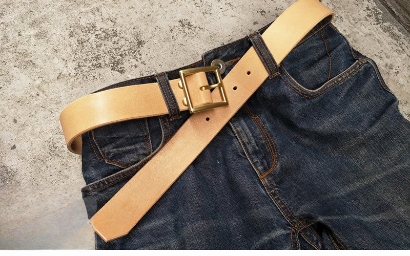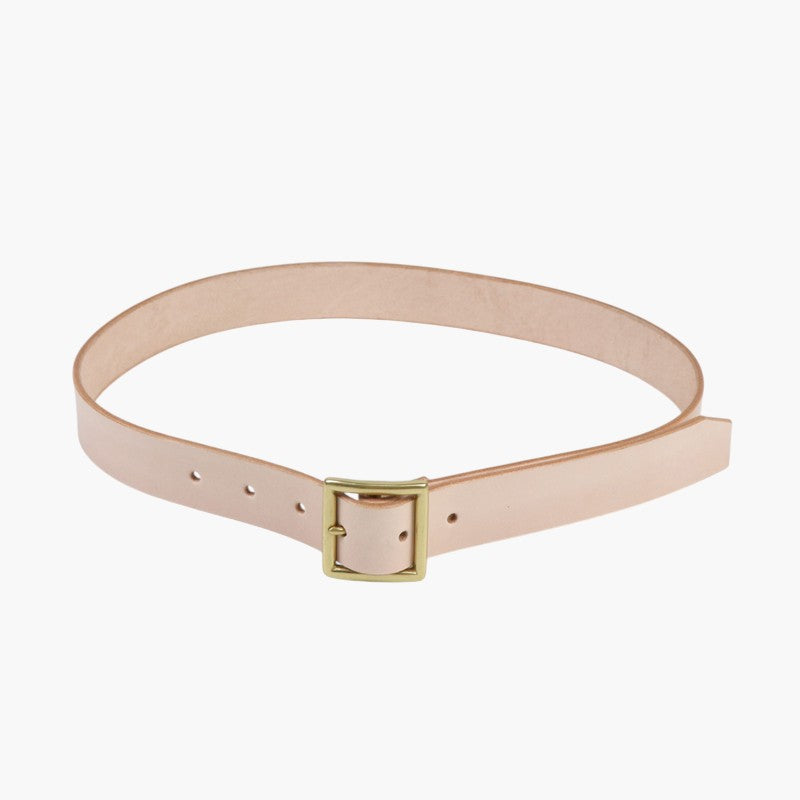 Crafted from full-grain vegetable-tanned cowhide, this belt highlights natural grain and rich texture that deepen with wear. Hand-finished for lasting durability, it features a solid brass buckle that adds subtle warmth and vintage appeal. A timeless everyday piece built to age beautifully.