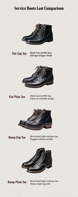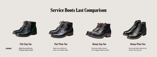 Service boots trace their roots to early 20th-century military footwear: the rugged ankle boots issued to soldiers in WWI and WWII. Built for long marches and harsh conditions, they established the clean 6-inch profile, sturdy leather, and durable stitchdown-style construction that later shaped North American workwear.