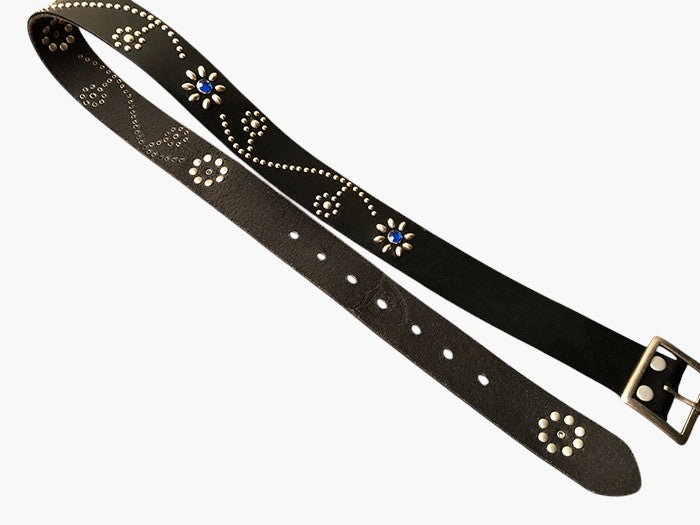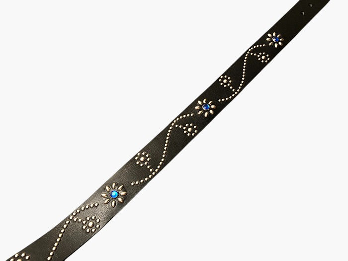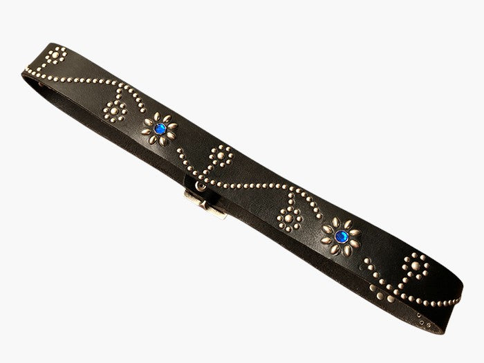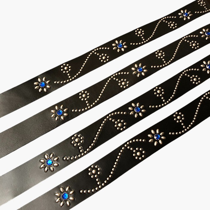 Crafted from cowhide, offering a firm structure, smooth hand feel, and the natural density characteristic of traditional Western leatherwork. Retains its authentic grain and texture, maturing into a rich, personal patina with continued wear. Hand-set studs form floral and trailing-vine motifs, crafted through time-honored techniques for lasting durability and vintage character.